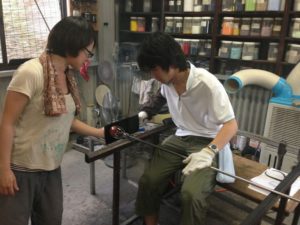 今回体験してみて職人さんたちの技術の高さが分かり、ガラス製品を見る目が変わりました。吹きガラス職人の水口さんにはインタビューにまで答えていただいて何からに何までお世話になりました。インタビューの内容はきんちゃいOHB8月号をお聞きください。