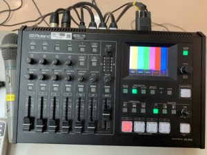 私は三回生なので最後の六月祭となったのですが、今年は過去二回の六月祭と比べて規模間が大きくなりました。まず、昨年一昨年は大学内の大学会館で行っていたため機材運搬が気楽だったのですが(忘れ物をしてもすぐにとりに行けた)今年は大学から自転車で10分ほどで着く岡山県生涯学習支援センターの視聴覚室を借りて行いました。私は忘れ物をよくするので、案の定忘れ物をし同級生や後輩に荷物を取りに行ってもらうとかいうかなり迷惑なことをしました。この場を借りてお詫び申し上げます。次に今年は企画の都合上カメラの映像をプロジェクターを使用しスクリーンに投影する必要があったのでビデオスイッチャーを導入しました。