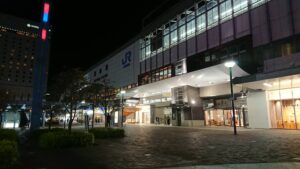 桃太郎像と言えば待ち合わせの定番スポットであり、夜であっても人はちらほらいました。